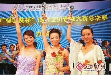 7月7日晚,由国家体育总局排球运动管理中心主办,大理白族自治州体育局、 大理州电视台、上海驰策市场营销策划有限公司承办,2009年全国沙滩排球巡回赛(大理站)沙滩宝贝选拔大赛(中国•云南)总决赛在大理落下帷幕,最终来自必一运动2007级研究生俞芳获得大赛桂冠。