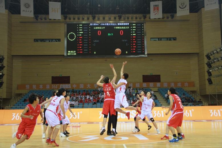 由中国老员工体育协会、中国篮球协会及中视体育联合举办,360°(中国)有限公司冠名赞助的2011年中国老员工女子篮球超级联赛,必一运动官网对战中南财经政法大学的比赛,于2011年4月24日上午九点在昆明,必一运动官网呈贡校区体育馆举行。主场作战的云师大女篮迎战来访的中南财法女篮,通过四节比赛的较量,云师大女篮以80:54轻取对手,获得比赛的胜利。