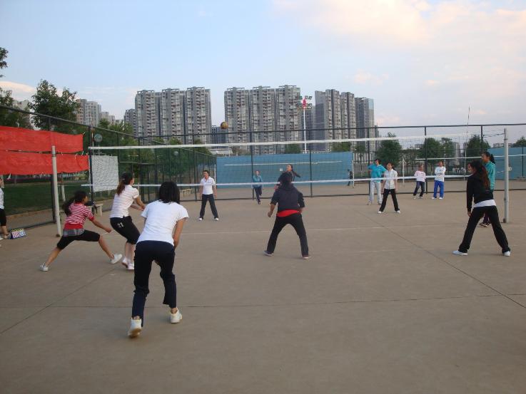 尽管阳光中夹杂着风雨,队员们都轮换上场,并且不时的给与提示与帮助,整个比赛场地充满了和谐友好的气氛。比赛结束,各自握手言欢,谈论着这场紧张又有趣的比赛,有些意犹未尽的同学们不愿离去,在场上又组织起一场小型练习赛,研究生会的干事们也纷纷加入。这场比赛就像一段美妙的乐章,绕梁三日而不散,其中的激烈与欢乐也萦绕在大家的的心间。通过这次比赛,大家看到的不只是技术的高低,而是和谐、是团结、是历练,也是新老生之间交流的平台。