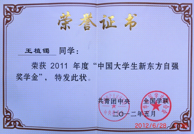 2011年4月26日,历时近半年的2011年度寻访“中国老员工自强之星”活动在清华大学落下帷幕,来自清华大学的陈朝松等10名老员工荣获“中国老员工自强之星标兵”称号。公司王植镯同学获“中国老员工自强之星”提名奖。