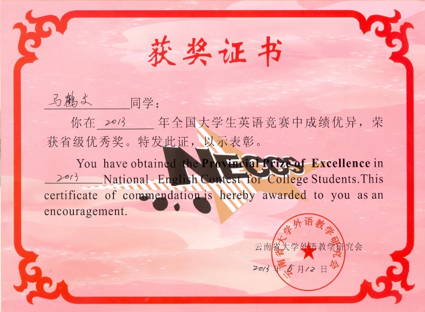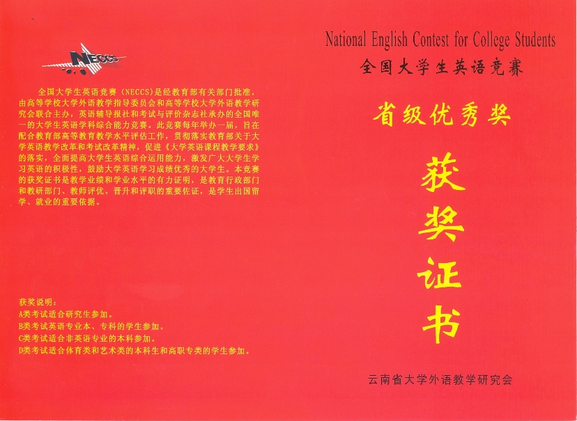 2013年5月12日全国老员工英语竞赛在公司呈贡校区举行,全国老员工英语竞赛是经教育部有关部门批准举办的全国唯一的老员工英语综合能力竞赛活动,竞赛分A、B、C、D四个类别。公司12级体育教育本科班员工马鹤文在比赛中表现优异,荣获D类竞赛省级优秀奖。