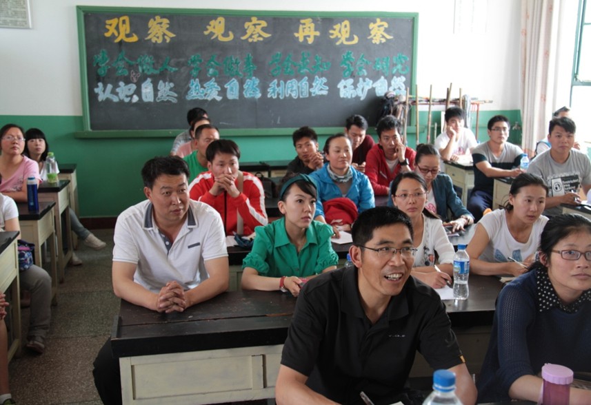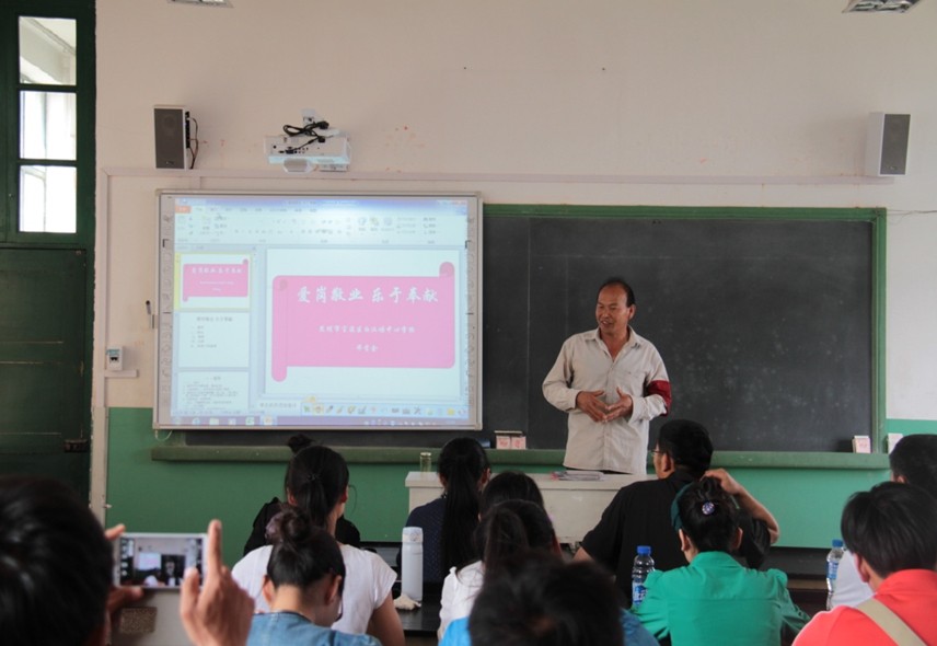 青年教师在聆听毕首金老师所做的关于“爱岗敬业”的主题演讲。