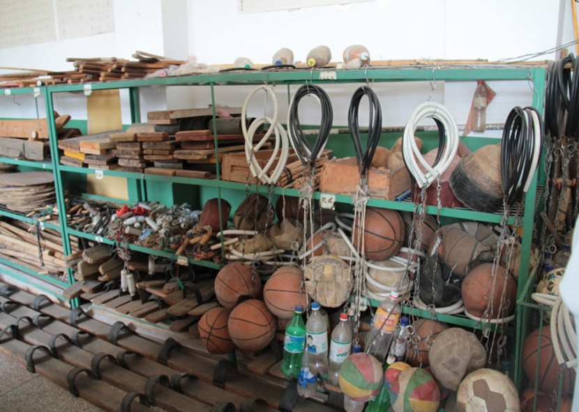 毕首金老师用废弃的篮、排、足球给员工制作的上课用具,这些都是员工眼中的宝贝。