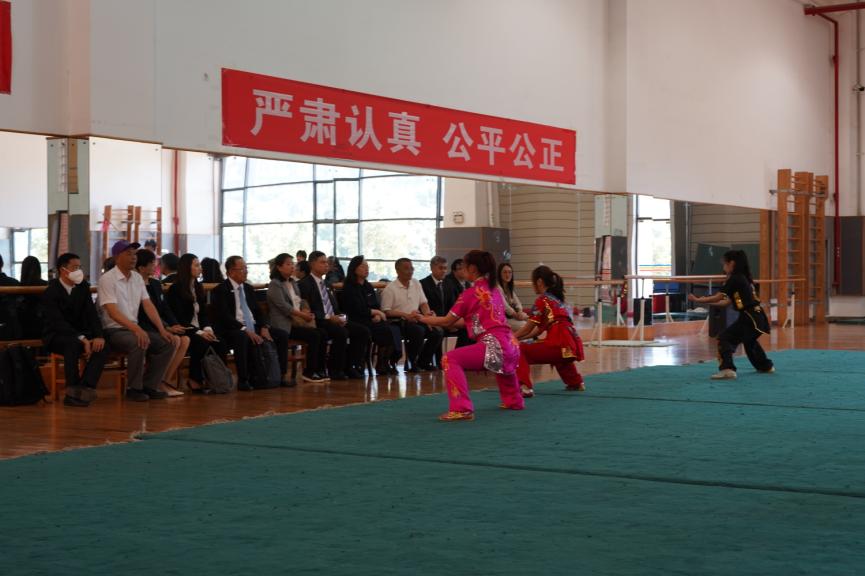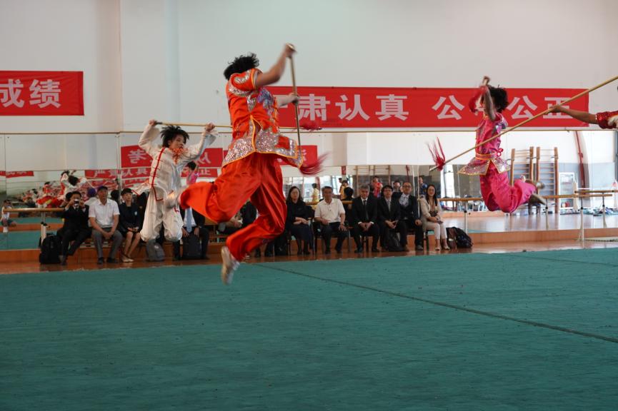 随后,清迈大学一行参观了公司东区体育场馆,在武术馆中观看了由必一运动武术队准备的表演项目,客人对公司优美的校园环境、先进的体育教学设施及精彩的传统武术表演表示赞赏。